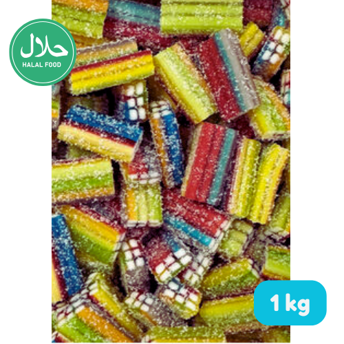 De Dulceplus Zure Multikleurige Baksteen Halal snoep 1kg bulk bevat kleurrijke snoepjes met een intense zure smaak. De stevige bite en opvallende look maken ze ideaal voor wie houdt van pittige en opvallende halal snoep.
