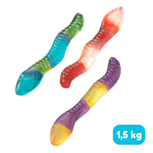 Deze slangen zijn leuk voor kinderen en een echte klassieker bij evenementen, traktaties of feestjes. Dankzij de handige bulkverpakking van 1,5kg heb je steeds voldoende voorraad om uit te delen.