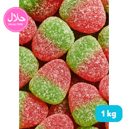 7 Stick halal snoep zure mini aardbeitjes bulk 1 kg bevat een grote zak met kleine jelly aardbeitjes met een licht zuur suikerlaagje. De snoepjes hebben een herkenbare aardbeivorm met rode tinten die meteen opvallen in snoepzakken. De combinatie van zoet en zuur maakt deze mini’s erg populair bij kinderen en volwassenen. Dankzij de uniforme grootte en vorm laat deze kilo zich makkelijk verwerken in grote aantallen.