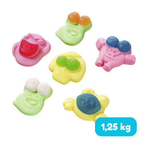De Frisia Monsters bulk 1,25kg bevat opvallende snoepjes in de vorm van kleine monsters. Met hun vrolijke kleuren en fruitige smaken zijn ze een hit bij kinderen en een leuke verrassing voor volwassenen die houden van speelse snoep.