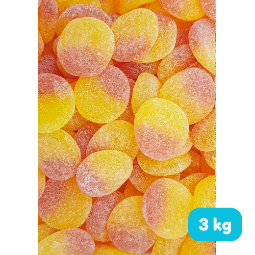 De stevige bulkverpakking beschermt de snoepjes tijdens transport zodat ze intact blijven. De kleuren blijven helder en de perzikvorm blijft goed herkenbaar, wat belangrijk is voor een nette presentatie. De zak kan eenvoudig geopend en opnieuw gesloten worden wanneer je gespreid werkt. Zo blijft de volledige 3 kg langer vers.