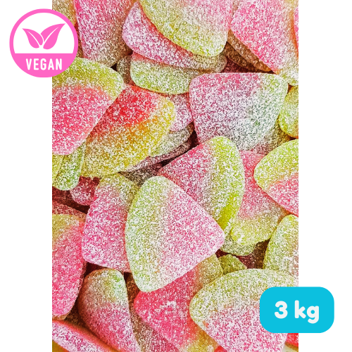 Frisia vegan snoep watermeloen zuur bulk 3 kg bevat frisse, kleurrijke watermeloensnoepjes met een duidelijke zure toets. De herkenbare watermeloenvorm en de groene en rode kleuren maken deze snoepjes meteen aantrekkelijk in snoepzakken. De zachte structuur zorgt voor een aangename bite die populair is bij kinderen en volwassenen. Dankzij de vaste kwaliteit kun je de volledige 3 kg efficiënt verwerken.