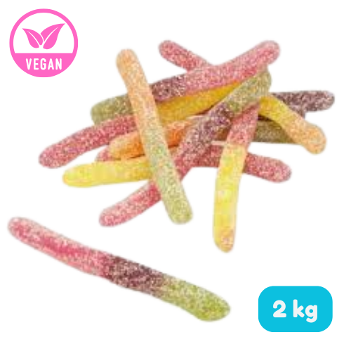 De Frisia Zure Wormen Vegan Bulk 2kg zijn speelse snoepjes die al jaren populair zijn bij jong en oud. Met hun vrolijke kleuren en hun pittig zure coating zorgen ze voor een frisse smaaksensatie die je blijft pakken. Omdat ze vegan zijn, kan iedereen er zorgeloos van genieten.