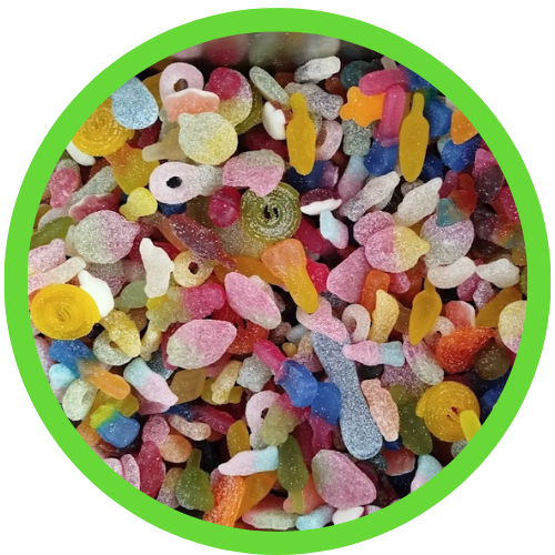 De inhoud bestaat uit een evenwichtige combinatie van verschillende kleuren, smaken en texturen. Van zachte gummies tot stevigere snoepjes, telkens met een herkenbare smaak die iedereen lust. Deze variatie zorgt ervoor dat je voorraad snel de deur uitgaat.